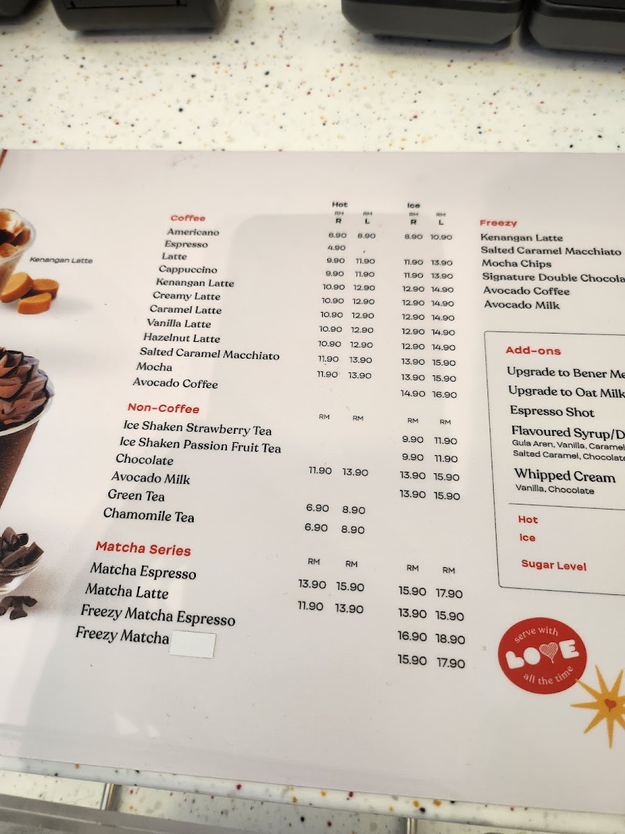 Kenangan Coffee Kota Warisan, Sepang Menu
